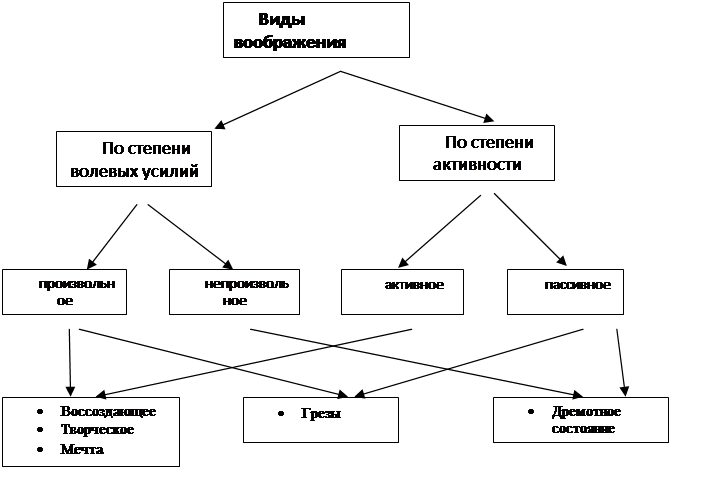 Таким образом, обозначенные виды воображений можно представить в виде следующей схемы.